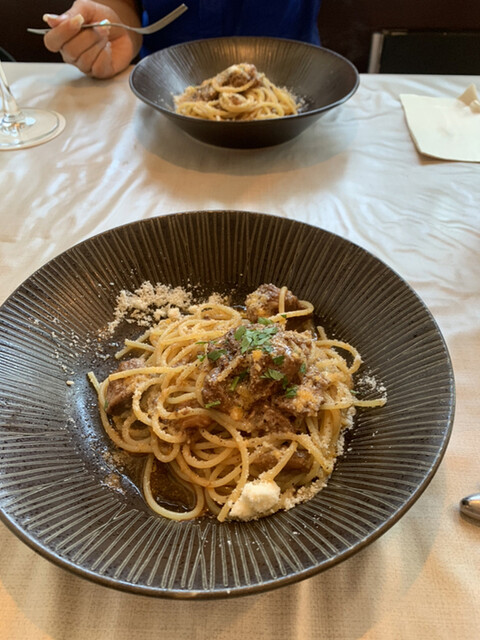 アヒージョもサラダも豚肉ステーキもかなりレベルが高いです。メインのパスタはシェフのお任せでしたが食べたかった王様のポロネーゼでした。こらはイタリア料理を得意と思っている僕にもマネができません笑