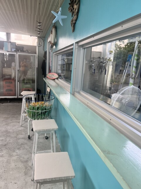 看板は壁にイルカの絵があり、酒販店の倉庫内で営業しています。