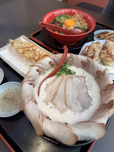 豚骨ラーメンは薄くてやわらかいチャーシューが花びらのようにたくさん入っていて、見た目にも映えてて、豚骨スープのいい匂い✨
