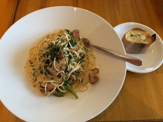 ランチセットのクレソンとベーコンのクリームパスタが寒い日に暖かくなりました。