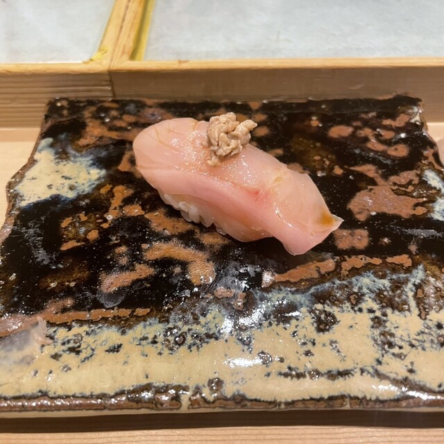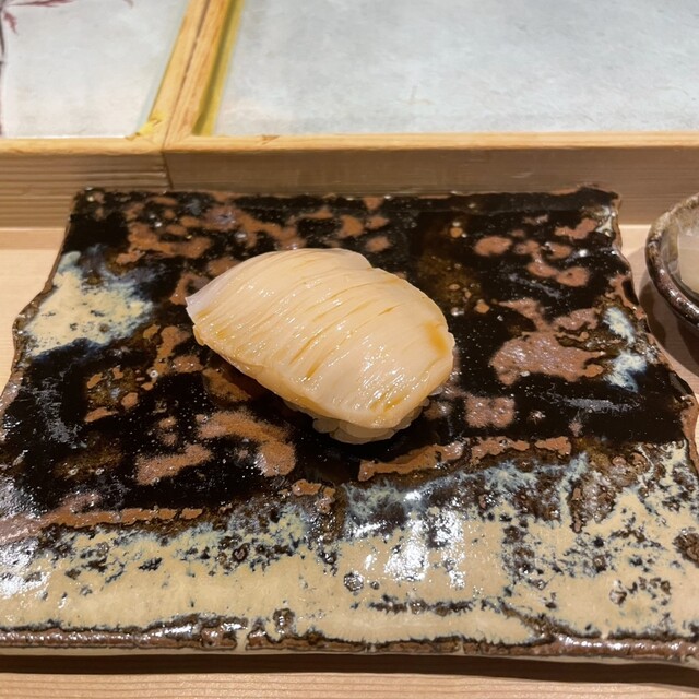 お鮨だけでなく、一品料理も素晴らしく、特に鮑にクリーム風味のソースを添えたものは、食べたことの無い味わい。隣の席の人たちも皆感動してました(笑)
