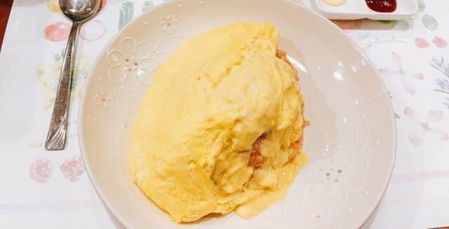 看板メニューのオムライスは、とろとろの半熟オムレツが主役。そこにちょうどよい辛さの明太子が合わさり、口に運ぶたびに奥行きのあ...