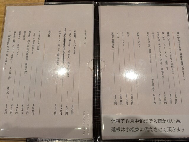 平日の11時30分ごろ5組ほど待ってたので整理券を発行して列に並ぶ。午前中は、並ぶ場所がギリギリ日陰なのでよい。今回は生姜そばと限定6食のチャーシュー丼を注文、麺はもちろん手打ちちぢれ麺、チャーシュー丼は私で最後でしたラッキー。