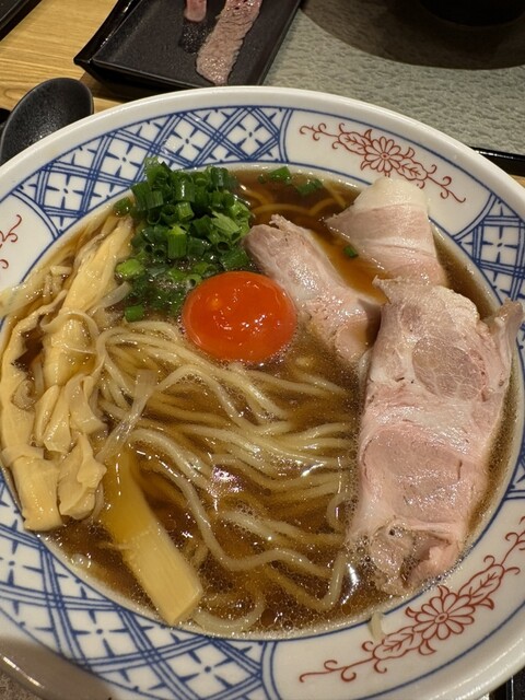 前回は淡麗醤油sobaをいただいたので、今回は鶏soba白湯の肉寿司セットを注文。