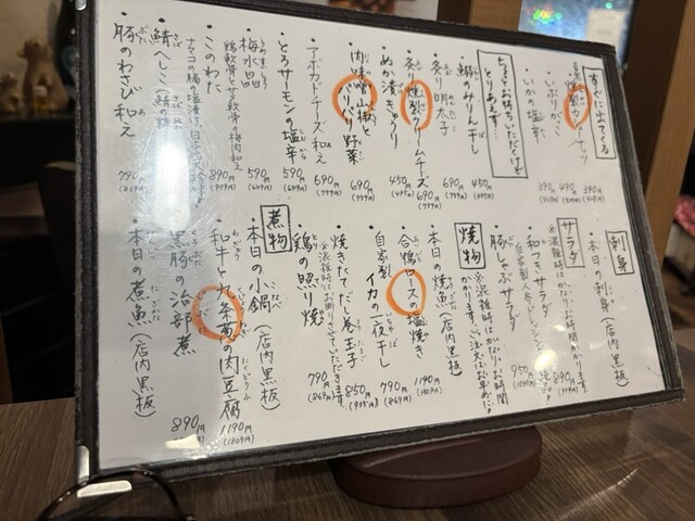 肉味噌、燻製クリームチーズ、肉豆腐、クリームコロッケ、塩辛、蒸籠蒸しのシラスご飯などを頂く