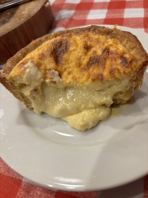 ラクレットのキッシュ 予め焼いた物の温め直しではなくまさに焼きたて 具がラクレットのみチーズを堪能できます 白子とゴルゴンゾーラのグラタン しめのチーズ盛り合わせと気がつけばチーズ三昧