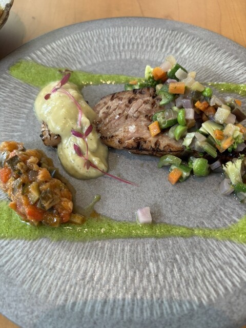 オードブルの鰹のマリネはバルサミコとバジルのソースが信じられないくらい鰹によく合って感動的に美味しかった