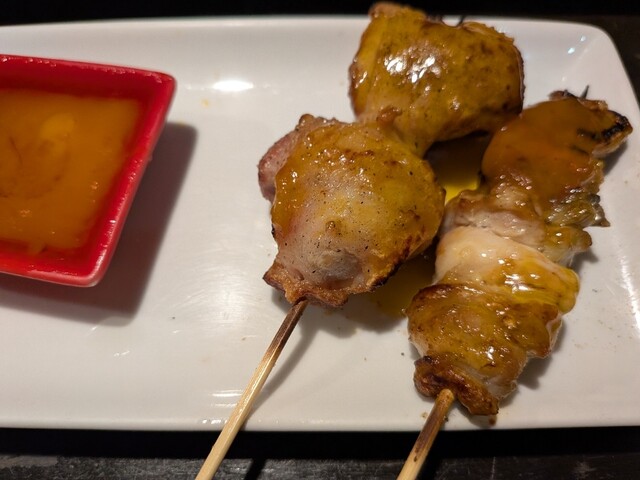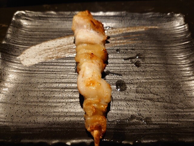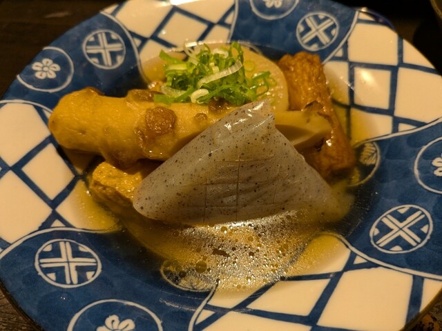 お通しは砂肝のぎんかわと赤こんにゃくを