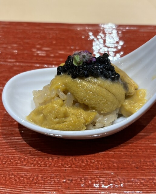 1品目からウニとキャビアを使った品が出てきてテンションがとってもあがりました!