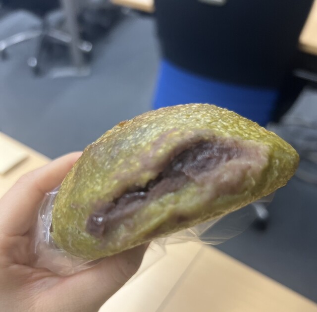 抹茶あずき、横向けるとこんなにもあんこが、、