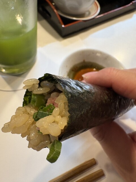 どのネタもかなり高レベルで見た目も綺麗で美味しい。特に気に入ったのはマグロ。マグロのねっとり感とシャリのバランスが良く、何巻でも食べれそう。巻き物は海苔の香りが良くこれもかなり美味しかった。