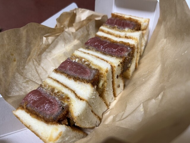 お土産で買ったカツサンド、ローストビーフもおすすめです。
