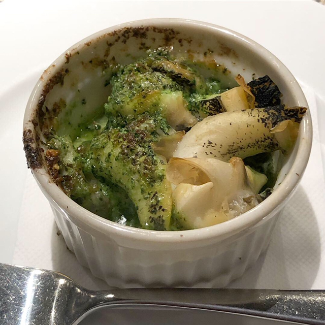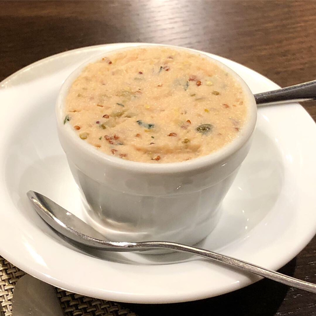 季節の一皿は「カプチーノ仕立ての松茸と蛤・アサリのチャウダー」。贅沢な松茸の香りと貝類のプリプリ感。中に潜んでいるフランを混ぜて。