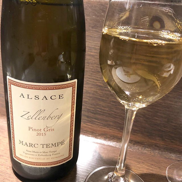 ワイン一杯目はちょっと甘みを感じるアルザスのゲヴルツ