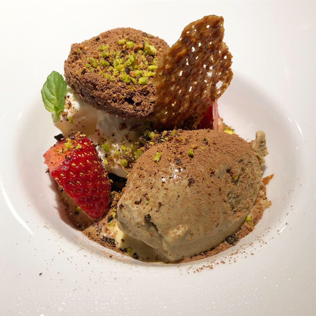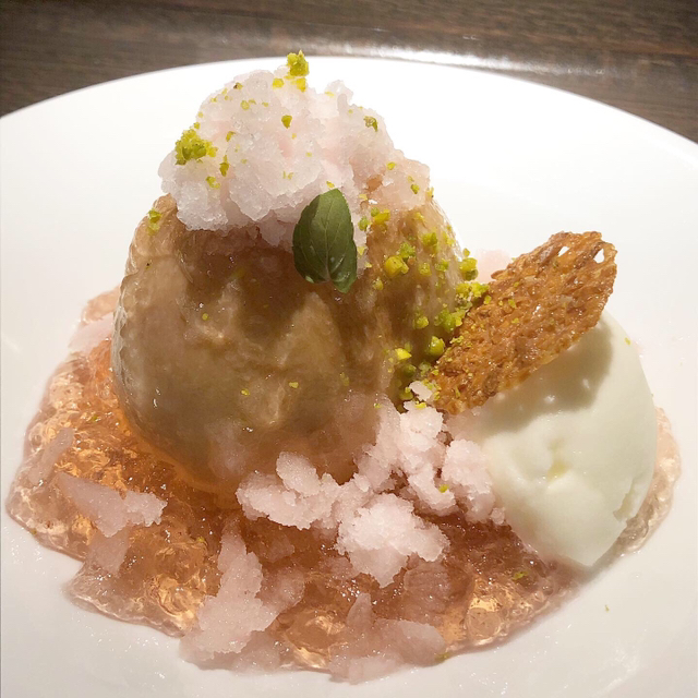ラストはグルナッシュの甘口ワインをいただき、念願の「熱々‼︎ 抹茶のフォンダンショコラ」を。美しいグリーンの色合いの抹茶チョコがビターな大人味を演出。
