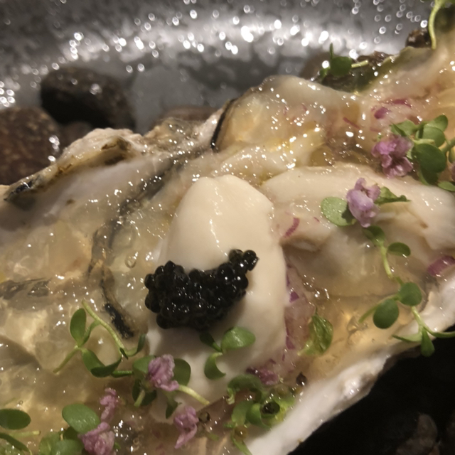 前菜前に「陸前高田産生牡蠣」を追加。濃厚な牡蠣をトマトジュレでツルっと。