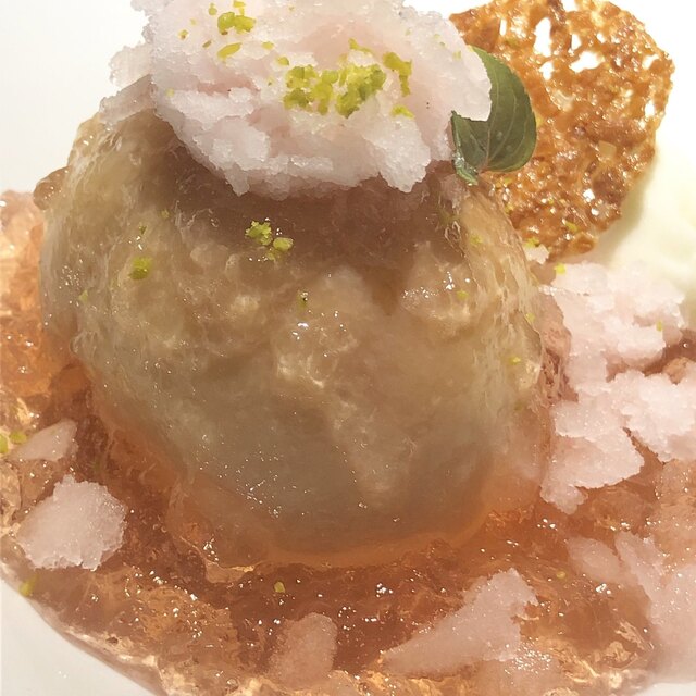 今回の真のメイン「旬の白桃丸ごとコンポート」です、パチパチ。コイツは食べ応えありですゎ。久しぶりの「別腹」という事で。
