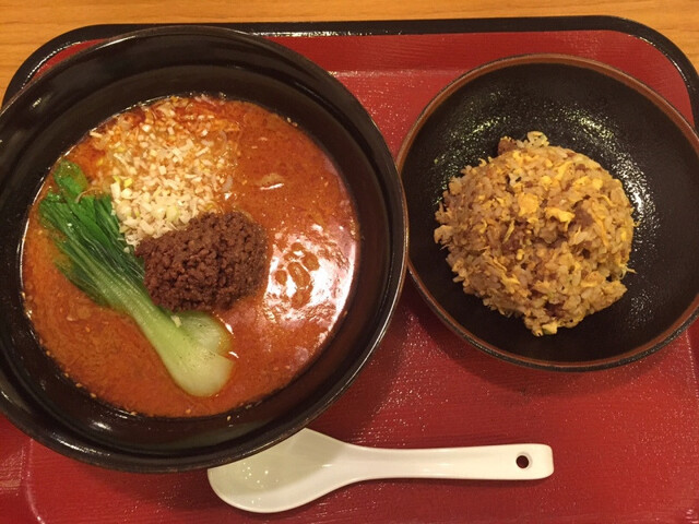 【久しぶりのリピ!担々麺がウリのお店で、夜でもお得なセットメニューがあるのがありがたいです♪あと炒飯はサラッパラッのタイプで熟練の技を感じました^ ^】