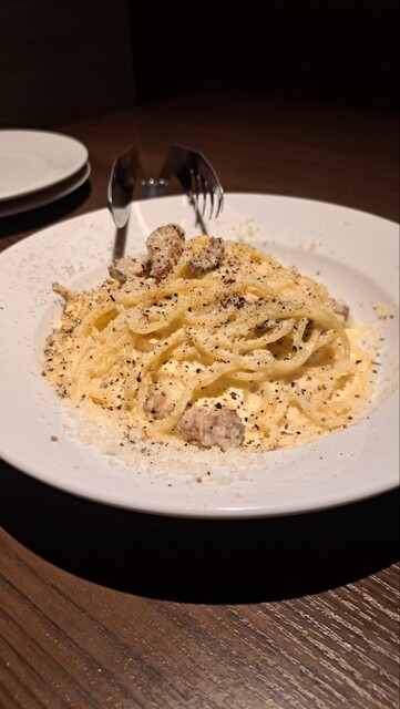 残念だったのは他の口コミにも書いてありましたがお魚。前菜のカルパッチョは若干生臭く、残念でした。カルボナーラはベーコンも大きめので大満足。デザートもおいしくて楽しい食事ができました!最後にドリンクまでついてほんとにコスパは最高です。ごちそうさまでした!