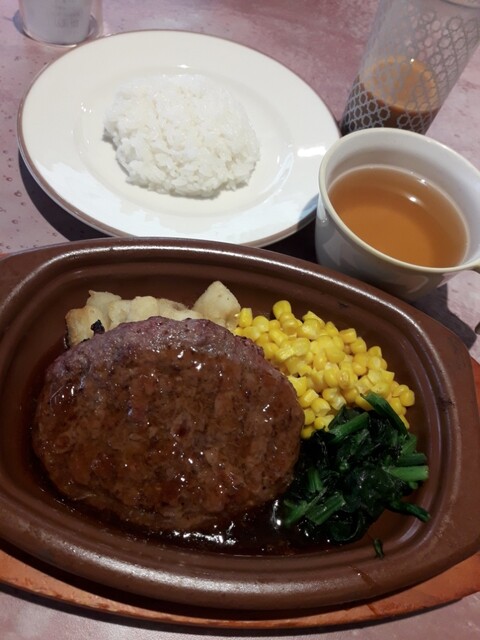 でもすごい人気ですね。平日昼12時過ぎに行きましたが7組ほど待機でした。ランチのハンバーグとドリンクバー、ティラミスを注文しました。少し濃い目の味がおいしいと感じさせますね。寒かったので先にスープを飲んじゃいました。パンはホッカホカでおいしかったです。ティラミスもしっとりしており、このお値段でこれはありがたいですよね。1人でちょっとしたクリスマス気分でした。