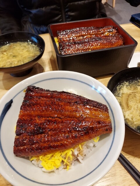 事前にお店に電話で問合せしてメニューを確認。簡単に言えば大中小があって男性の連れは中を、女性の私は小を注文しました。待っている間に見事な特盛のようなすごい料理が行き来していましたね。連れは目を見開いて眺めておりました。さて私たちは思っていた量だったのでちょうどよかったです。そこでですね、すごいのは身の厚みでした。ウナギの身が厚いんです。そして焦げ目が香ばしくていい香りなんですよ。おいしいと思わず言いながら食べていました。私もうなぎは時々ですが食べたことはあります。でも香ばしさと厚みはすばらしかったです。キムチをトッピングしてこれで3400円ですよ。ここ絶対に穴場です。場所柄にぎやかな雰囲気ですがおいしいです。海外から来た連れが今回の旅行中、ここのウナギが一番おいしかったと言っていました。私も認めます。皆さんも予約して行ってみてください。かわいいカードがもらえるかもしれません。
