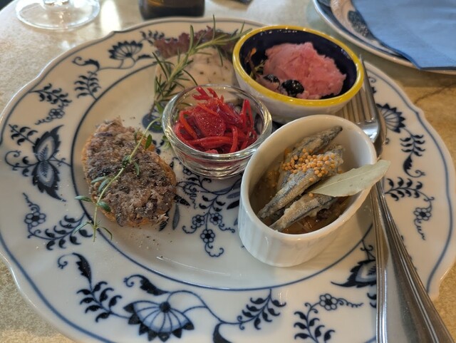 ■前菜盛合わせ、ジェノバ風リングエッティーネ、