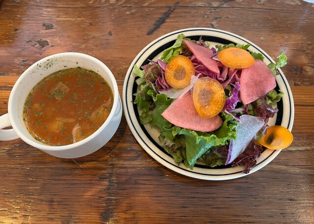 鎌倉野菜推しのこちら パスタの他にスープ、サラダ、ドリンクが付く!