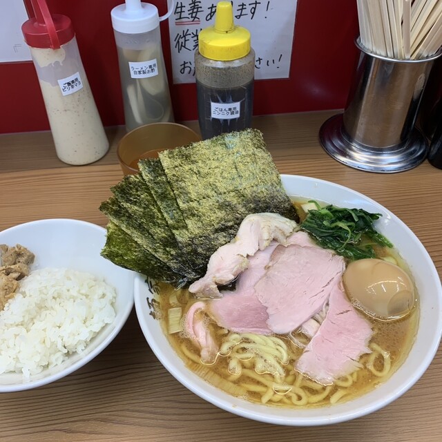 醤油のキレに家系では珍しい鶏ガラの入ったスープとひとつひとつがハイレベルのトッピングと酒井製麺の麺とがベストマッチでライスがめちゃくちゃ進みます。お腹パンパンでもライスはおかわり必至ですね〜