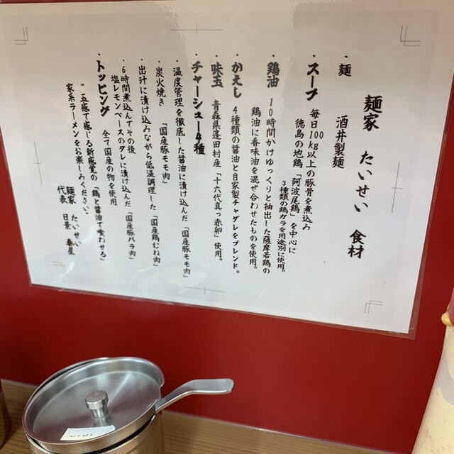 家系ラーメン有名な麺屋たいせいさんへ初訪問しました。