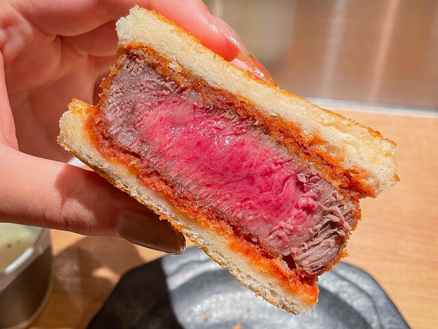 この日1番楽しみにしていたのが、"ここのカツサンドが一番美味しい"と言うひとも多い名物カツサンド。サクッと軽いパンにはさまったシャトーブリアンのカツは、かなり厚く迫力が凄い!トマトベースのソースとも相性抜群で、とても美味でした。