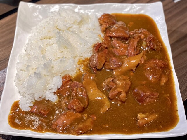 コウのツラミは味付けがしっかりしてて食感もかなりすき!初めてたべるカレーは思ったよりサイズ大きめで4人で分けてもしっかり食べれるくらい。お肉がごろごろはいってて辛すぎず美味しかったです!!