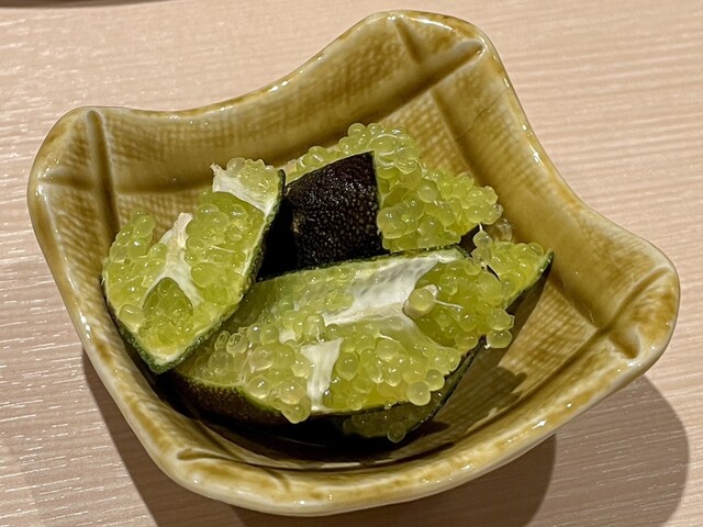 木村さんに出していただいたシトラスキャビア(フィンガーライム)が、タンをはじめ塩物のお肉と相性抜群でかなり好きでした。プチプチした食感と爽やかな酸味が最高、、収穫時期の関係であまり提供していないようですが、またタイミング合えばいただきたいです。