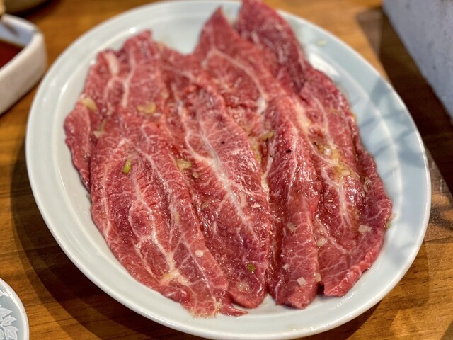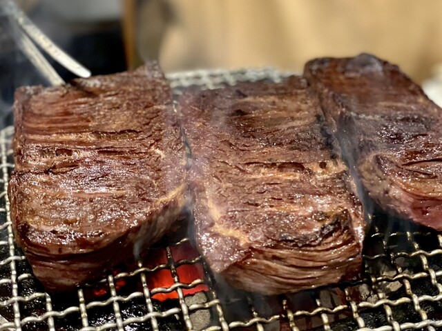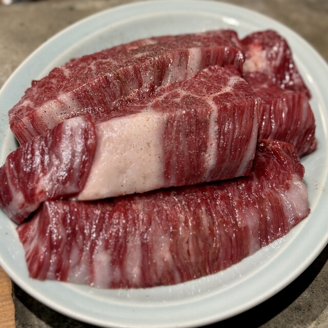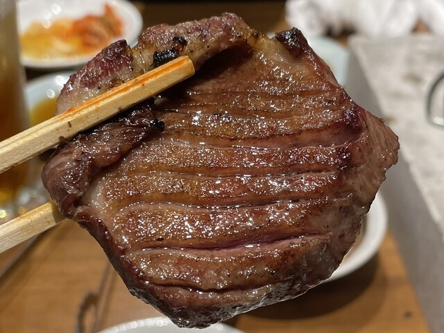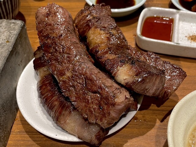 タンとハラミは注文必須!普段から焼いてる人でないと難しそうな分厚さですが、弾けるほどに膨らみ肉汁を閉じ込めて焼き上げたハラミは、噛んだ瞬間旨味が弾けとび言葉を失う程に絶品でした。サガリは贅沢にタレを3度漬け。しっかりタレが染み込んだサガリは噛むたびに肉汁が溢れ出てほろほろとくずれる感覚も堪りません。