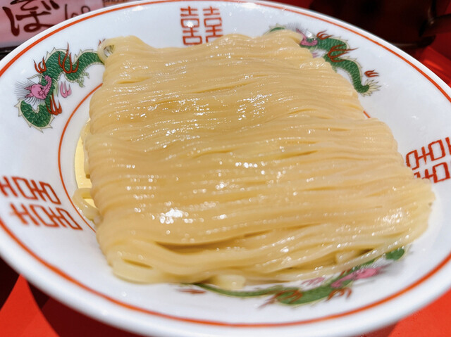 麺をスープにつけて食べると、喉越しの良さと共にスープの深みのある味がマッチしてとても美味しい。麺がこれほどつるつるなのにスープをしっかり絡めてくれるのはびっくり。