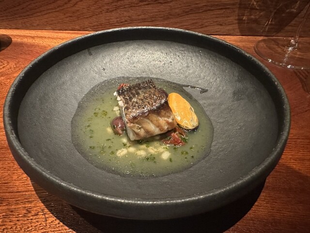 とてつもなく美味しかったのはカプレーゼで、モッツァレラにトマト、粉末にしたバジル、オリーブオイルが食べやすく調理されている。口に運ぶと全てが一体となって溶けていく感じ。シェフはバジルを葉で出すと口に残るのが嫌でこうしたそう。