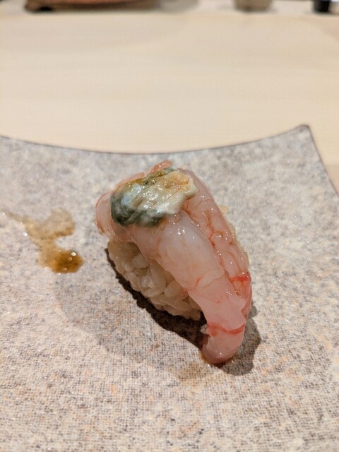 水槽で元気に泳いでいた稚鮎は、丁寧に天ぷらに揚げられた後、握りに仕立てられ、香ばしさとほろ苦さが絶妙なバランスで印象的。