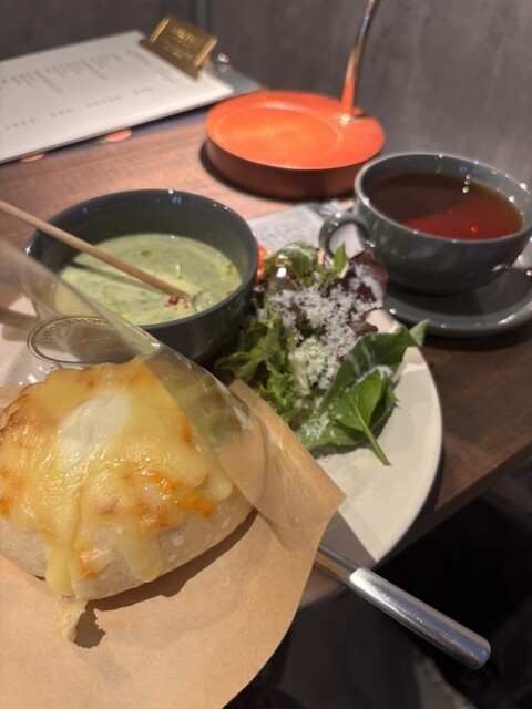 今日は友達と待ち合わせてモーニングベーグルとルイボスティ