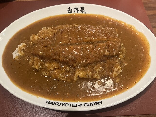 スパイシーなカレーがとんかつとライスにたっぷりかかっていて美味しい、ルーも大盛りにして正解でした。
