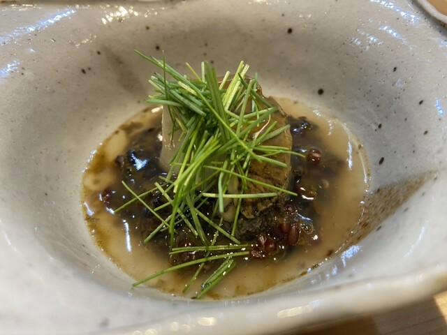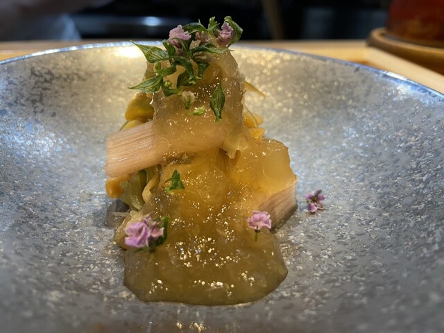 菊芋のソースが添えてあり、絡ませることで滑らかな食感に。