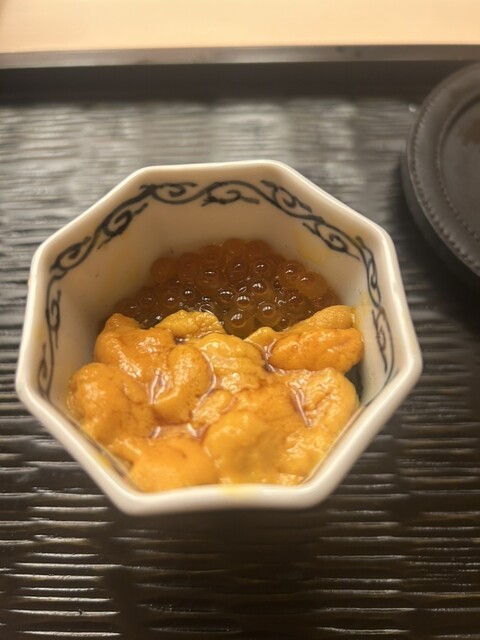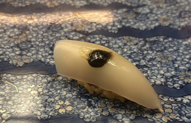 お鮨も美味しいですが内子とトリュフの和え物やさっと熱々の餡に通した穴子、焼きみる貝は箇所によって歯応えも違って特に美味しかったです。