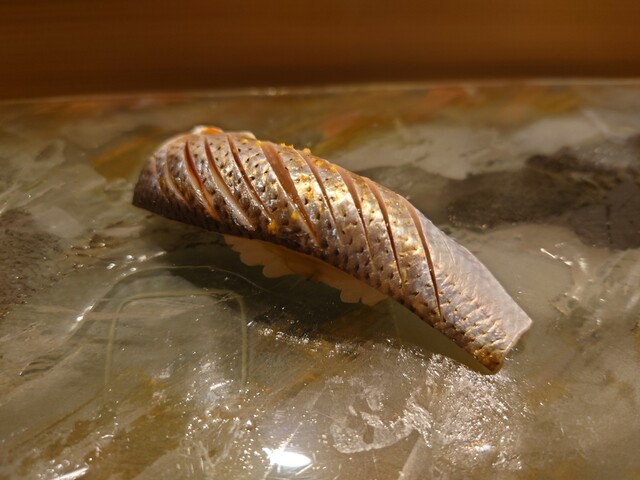 ◯連子鯛(サスエ前田さん) ガリを漬ける位の甘酢で 春子鯛みたいな仕立てで締めてあり、香りも良い 軽く酢締めされていて 食べた後も心地良い旨味が凄く残るなあ❗️
