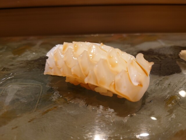 ◯甘鯛(サスエ前田さん) 寝かして出したネットリ感ではなくて 最初からこれ位のネットリ感が出ている白身 大将さんの説明通り 寝かしてある様なネットリ感ある旨味で 寝かしてないのが信じられない位