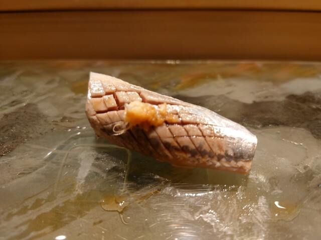 ◯イワシ 良い品が入った時しか出されない あまり強過ぎないりんご酢で軽く〆てあるとの説明 イワシの旨味感がジンワリと口の中に広がり 後味の旨味の余韻も良いよねえ❗️ 嫌味感、ドギツさも感じないし♪