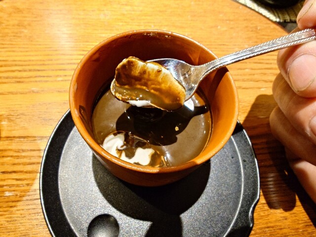 アワビは弾力のある柔らかな煮方で心地良く 美味しいのは当然だけど 鮑から出たとろみあるスープの旨味感が ジンワリとあって、全てを掬い取り味わい尽くした 肝は苦み感はほぼ無くて美味しい