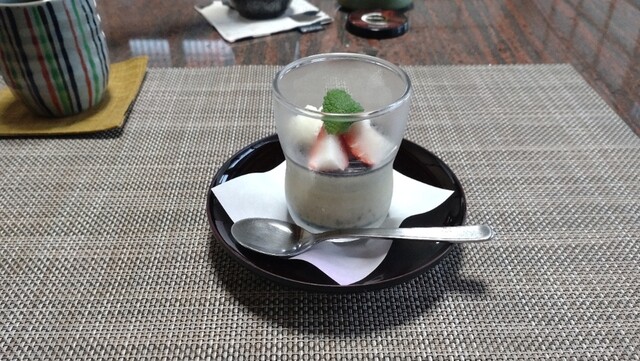 ▷デサート 梅酒の様なコク感、深み感のある 適度な甘みのプルンプルンな梅ゼリーに ぶどう、キーウィーフルーツ、みかん りんごが入っていた 梅ゼリーの甘み感にフルーツの酸味感が合わさり美味しかった