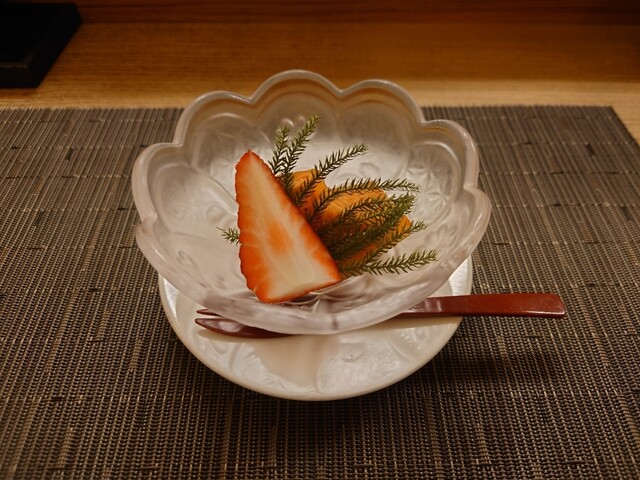 ◯春子鯛? 小さい小鯛を酢締めした品 これにも熟成による旨味感がある 録音が途中間違えて一旦停止してるので 感想メモが思い出せないw