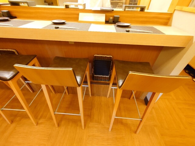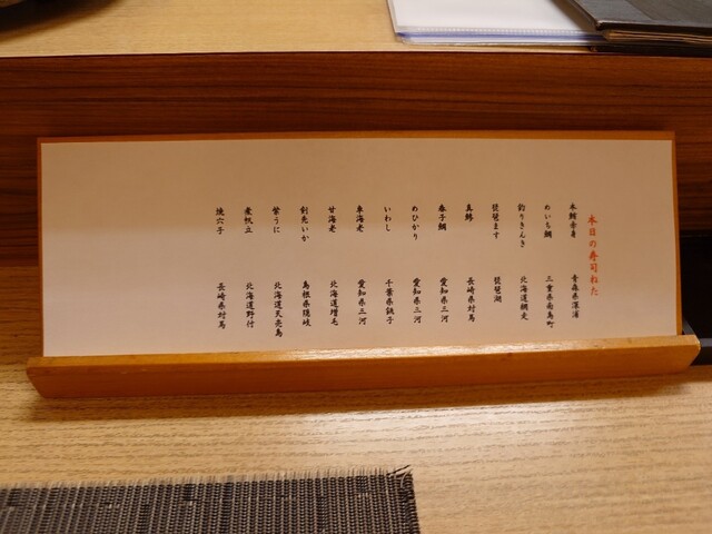 テーブルセットアップ状況 カウンター席メニューは ◯極(握り)11,000円 と ●極(つまみ+握り) 16,500円 が選択出来るけれど 今回はつまみ+握りのコースを選択した