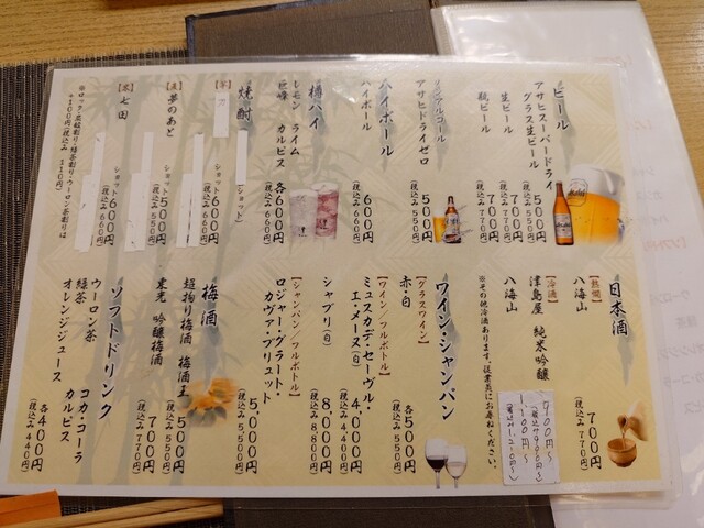 メニュー(2025/08) カウンターコース以外のメニューは2025/08/31 で終了となる