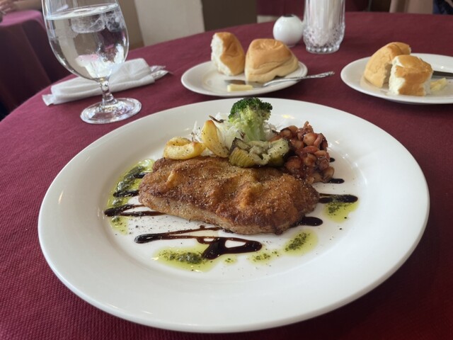 またカツレツもサクサクで、スパイスやバルサミコ酢の酸味のあるソースがマッチした一品でこちらもとても美味しい。