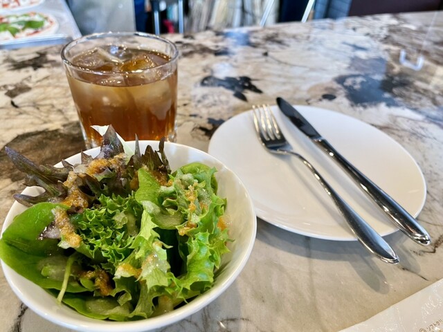 セットでサラダとピーチティーがついてきて、なんとピーチティーはおかわり自由とのこと。